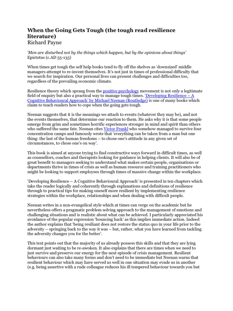 When The Going Gets Tough Psychological Resilience Positive Psychology